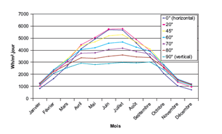 Pour éviter les surchauffes en été, le panneau est actuellement positionné avec un angle de 75° correspondant globalement à la position du soleil en hiver.