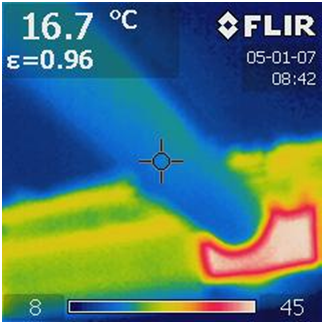 Dans un environnement à 8° (cave) les gaines isolées rayonnent à 17° et non isolé à plus de 45°