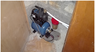 En parallèle, La maison présentant une ancienne cuve, celle-ci a été nettoyé par une société spécialisée et réutilisé pour récupérer une partie des eaux de pluies. L’eau ainsi collectée sert à alimenter les sanitaires par l’intermédiaire d’une pompe de surpression. Des filtres ont été installés en amont de la pompe et en aval (20 puis 5 microns + filtre charbon) et un ballon tampon ( que l’on ne voit pas sur la photo ) a été installé sur le réseau pour limiter les démarrages de la pompe, le tout sur un réseau distinct.